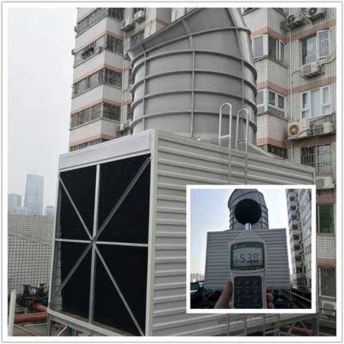 但帶給人們歡樂的同時,其中央空調系統冷卻塔設備卻給附近居民帶來困擾,嚴重影響住戶的正常生活(冷卻塔離居民樓僅6米),如何在如此近的距離實現不擾民,卻又不影響現有主機散熱一直是個棘手問題,而建設單位及設計提出的方案是:不限定品牌、網上公開招標,不接受圍蔽降噪為前提,要求冷卻塔6米直線距離實現白天60分貝,晚上50分貝;
